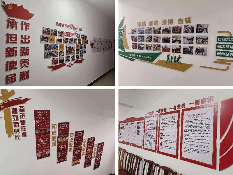 文化墻內(nèi)容包括黨的一大到二十大黨史、四個意識、四個自信、兩個維護、黨員干部職工風采、黨建品牌、黨務公開、黨員示范崗等內(nèi)容,陣地建設的打造,不僅宣傳了黨建知識、展現(xiàn)了黨員形象,還涵蓋了當前黨建工作的重點內(nèi)容,將黨建品牌上墻,可以很直觀的看到黨建深度融入生產(chǎn)經(jīng)營工作取得的實效性做法,可以讓職工群眾更深刻直觀的了解黨員先進形象,同時不斷激勵黨員創(chuàng)先爭優(yōu)、爭做模范,進一步提升了黨建的文化內(nèi)涵,使廣大黨員群眾在潛移默化中了解、支持、深化黨建工作,不斷提升黨建活力,發(fā)揮黨建引領作用。