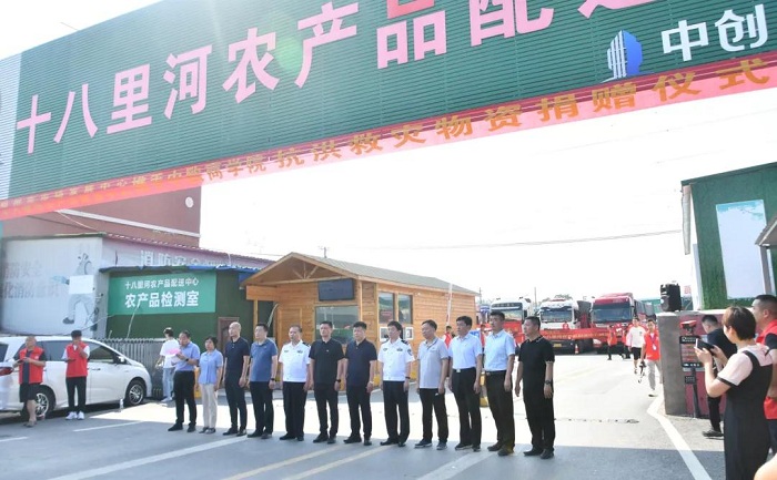 7月26日上午,鄭州市市場(chǎng)發(fā)展中心聯(lián)合十八里河農(nóng)產(chǎn)品配送中心和中歐商學(xué)院舉行賑災(zāi)物資捐贈(zèng)儀式,向我市各地受災(zāi)嚴(yán)重地區(qū)捐贈(zèng)礦泉水、牛奶、面包、方便面等應(yīng)急生活物資。
